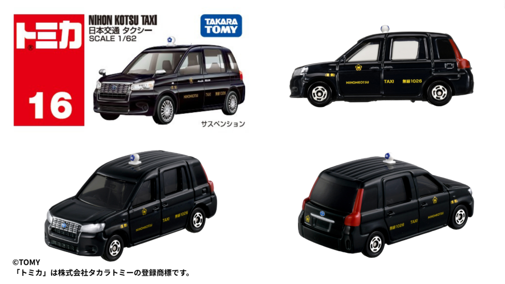この度、株式会社タカラトミー様より、弊社車両をモデルにした「トミカ No.16 日本交通 タクシー」が発売されることとなりました 。